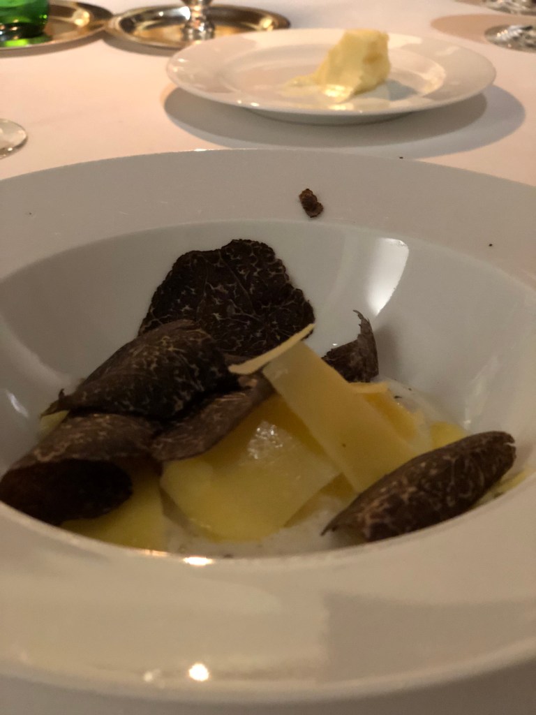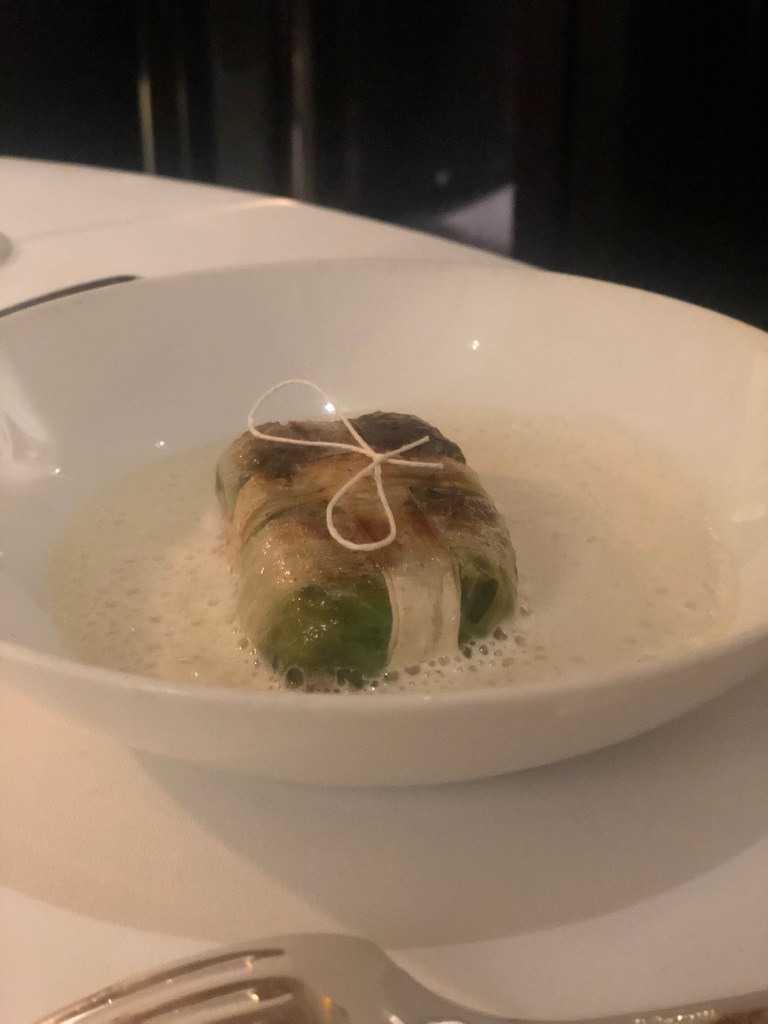 The vegetable paupiette was confusing. As a vegetarian in Paris, I was excited by the concept. The flavors in the dish did not meld how I imagine they do in a well-made beef paupiette. Instead of melting in your mouth and pleasantly falling apart, the vegetables were plain old soggy. The flavors did not transfer to every bite. Conversely, the chicken my dining companion was served received a lot of praise. It was the best chicken he had ever had and still remains on his mind to this day. Next up was a celeriac risotto served with black truffle. This illustrates the strength of Chef Passard; the perfect marriage between simplicity and complexity. The celeriac strips were left a little crunchy but remained sweet enough that I wanted to keep going in for a second bite. Our server, and I am sure the team in the kitchen, recognized that at times truffle can be overwhelming for a dish. He shaved on the perfect amount of black truffle. It accentuated the earthy tones of celery root which make it sing as a winter root vegetable.