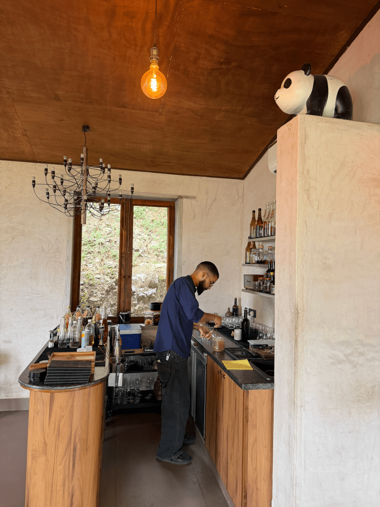 We took that moment, wandered, and found Dixit Kaundal again. What followed felt less like service and more like serendipity. He invited us back inside for what became a kind of private interlude in the exquisitely designed dining room. He crafted cocktails not on the menu, just for us to celebrate the occasion. He spoke about the property’s philosophy: everything is grown on-site, everything is repurposed, nothing goes to waste.